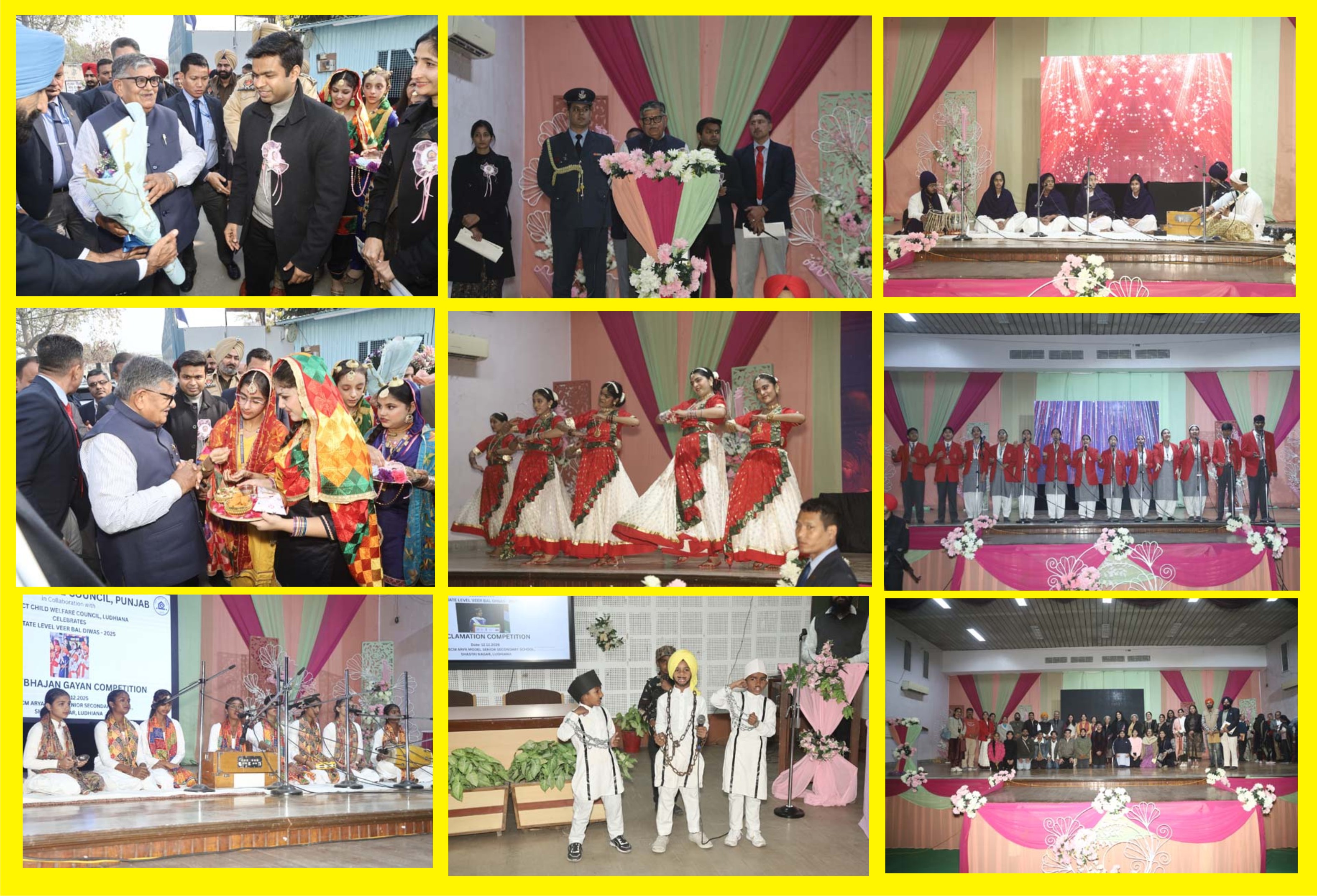 Child Welfare Council, Punjab organized State Level Veer Bal Diwas in collaboration with District Child Welfare Council, Ludhiana on 12-12-2025 at BCM Arya Model Sr. Secondary School, Ludhiana. The programme was inaugurated by Sh. Gulab Chand Kataria, Hon’ble Governor, Punjab & President, Child Welfare Council, Punjab. A bouquet was presented to the Governor, Punjab by Mrs. Prajakta Avhad, Chairperson, CWC, Pb. & Mr. Himanshu Jain IAS, Deputy Commissioner, Ludhiana.