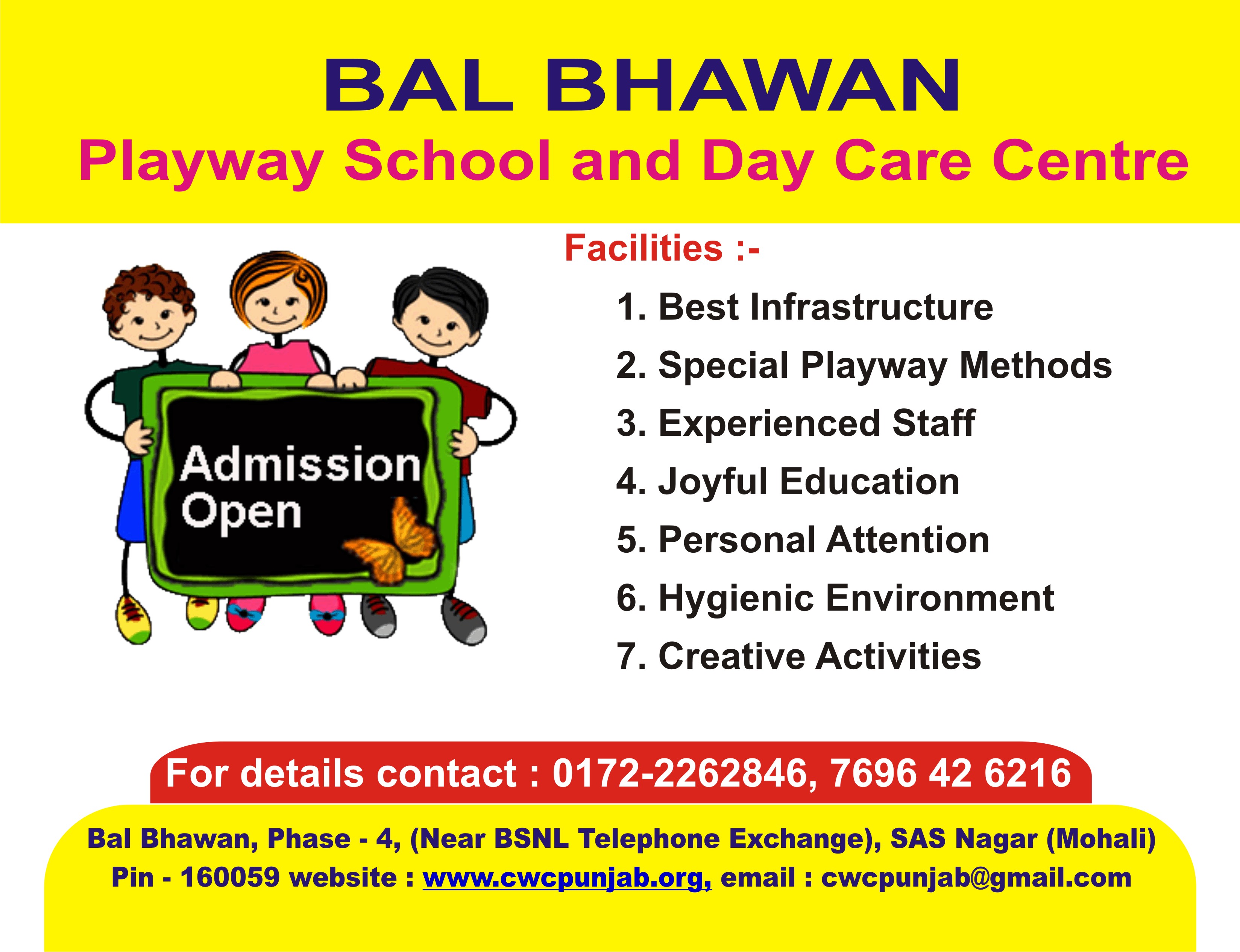 Required Creche Helper at Bal Bhawan, Phase 4, Mohali (Contact : 0172-2262846)